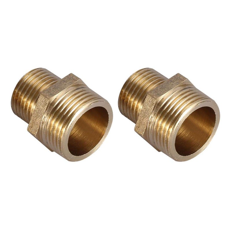 3/4" to 1/2" Brass Hex Nipple, Brass Pipe Fitting Reducing Hex Nipple Bushing Male Pipe Water Tube Fittings((Thickening) 2pc)