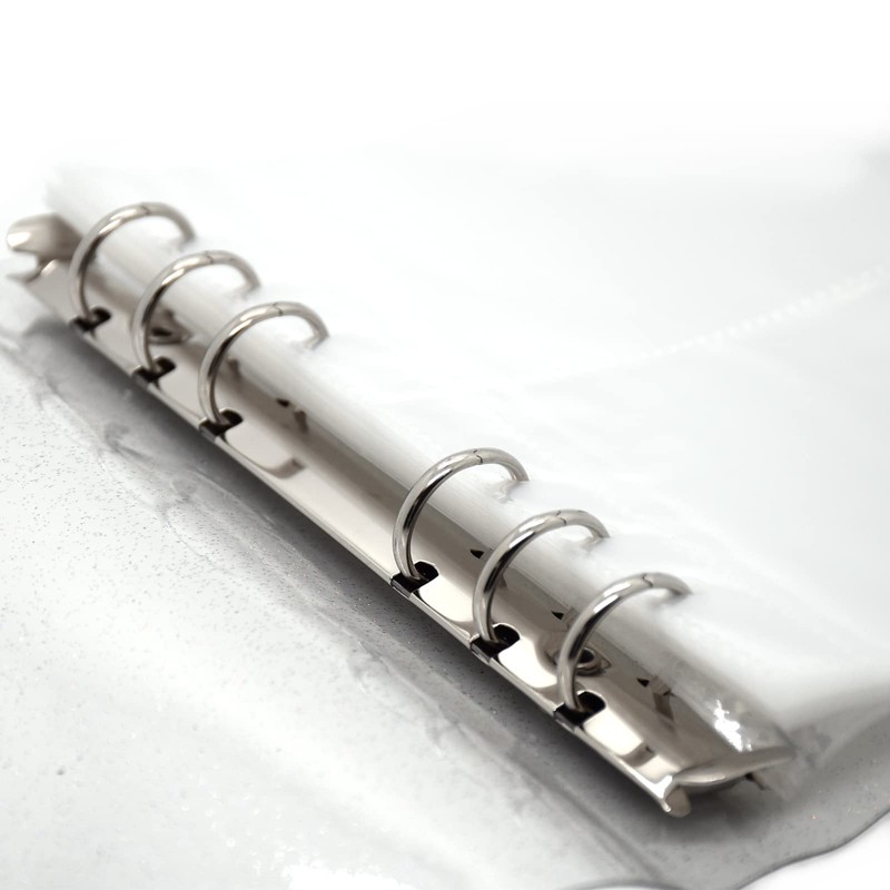 2)Stainless steel 6-ring binder---for easy page turning and replace pages at will.