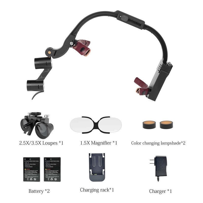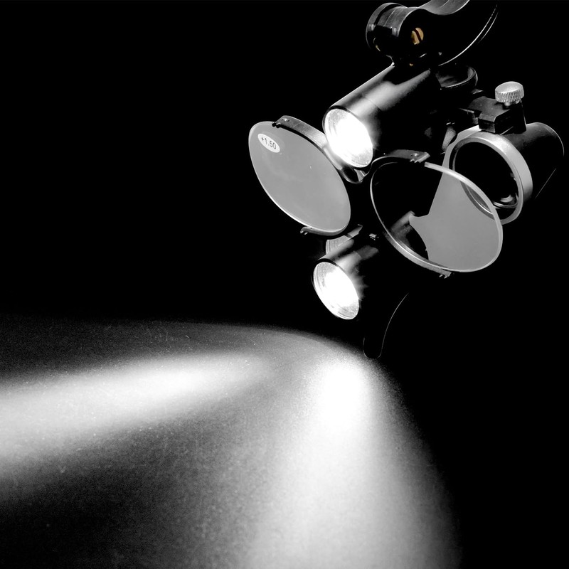 3.5X Magnification Binocular Loupes 5W LED Head Lamp Double Light Magnifying Glasses Aluminum Case (Black)