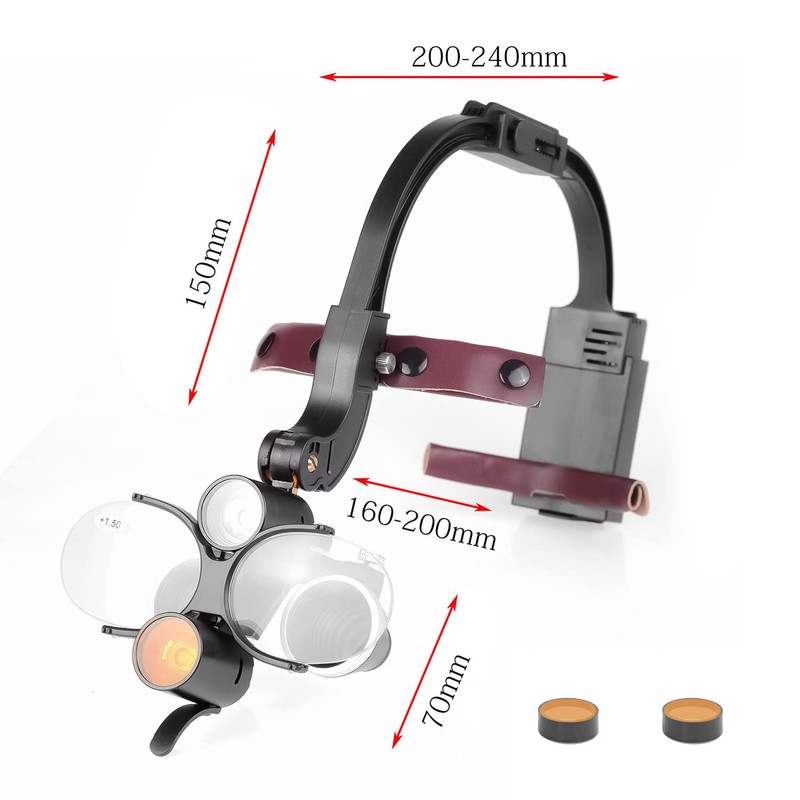 3.5X Magnification Binocular Loupes 5W LED Head Lamp Double Light Magnifying ...