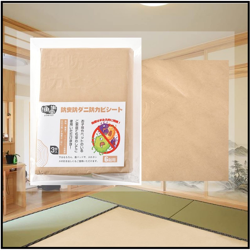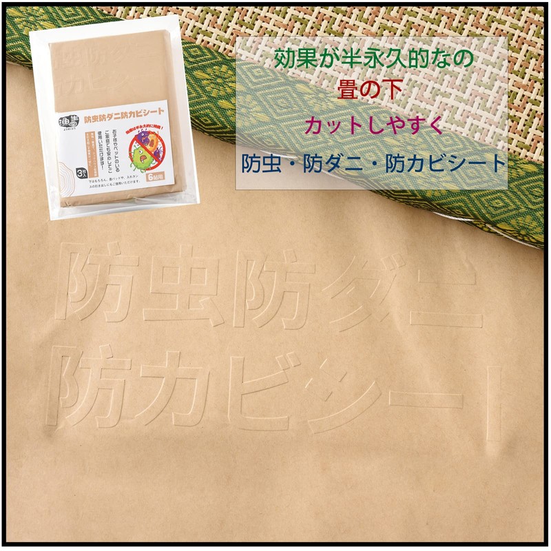 漁生堂 3枚入り 防虫・防ダニ・防カビシート 効果が半永久的なの 6帖用 畳 押し入れシート ウッドカーペットの下に 防虫紙 防虫シート 防湿シート(90 × 380cm) (6帖用)