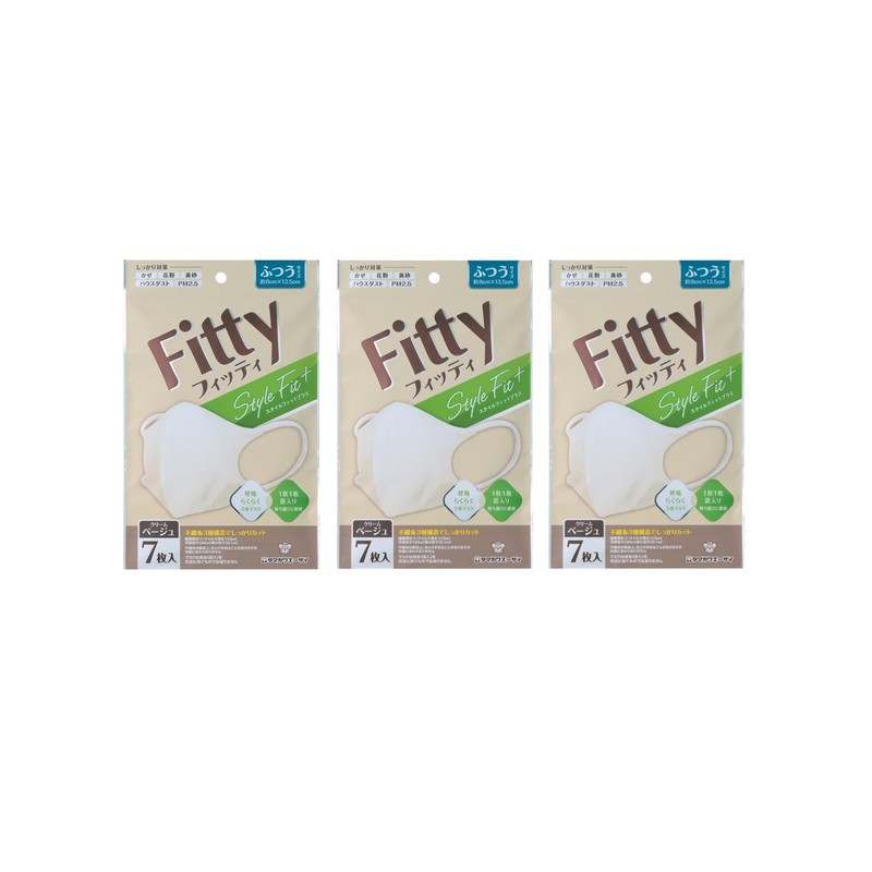 [タマガワエーザイ] (3個セット) フィッティ スタイルフィットプラス 立体 7枚入り クリームベージュ ふつうサイズ マスク