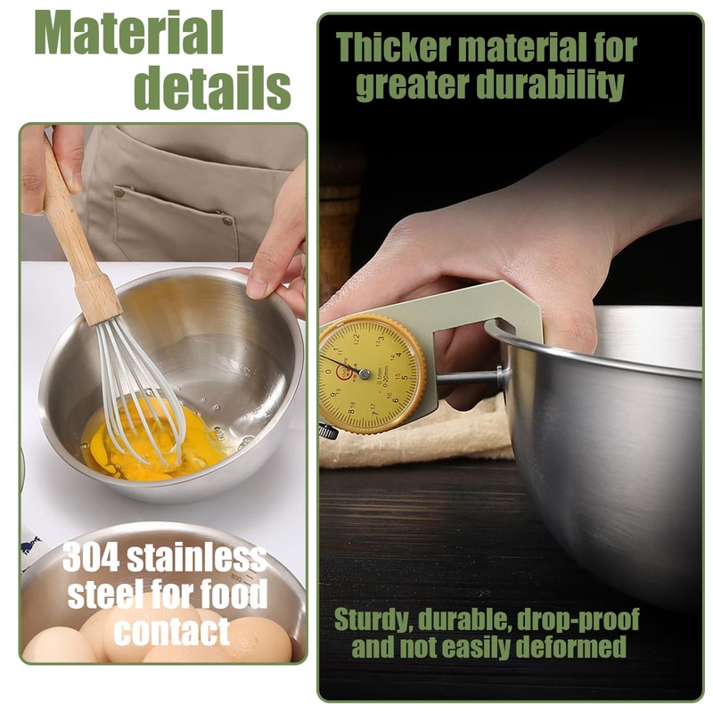 - 【Practical Design】 There is a scale in the stainless steel bowl, which makes you can get the right amount of ingredients. The curling edge design is smooth without hurting your hands. The flat bottom makes it not easy to tip over.