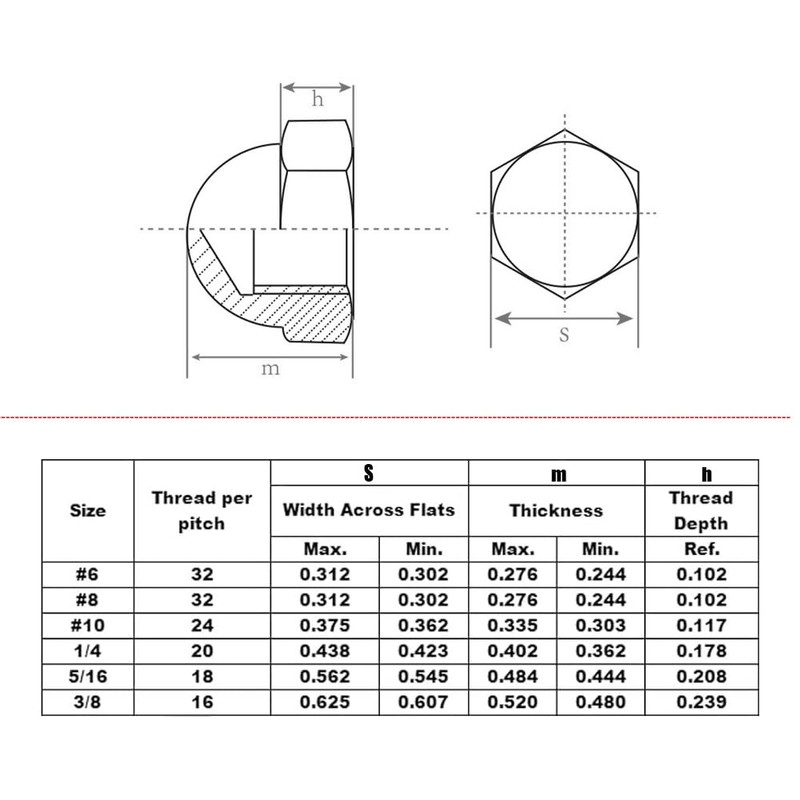 - Total 30 pieces 3/8-16 acorn nuts are packed in a durable cardboard box, enough quantities can satisfy your daily time using.
