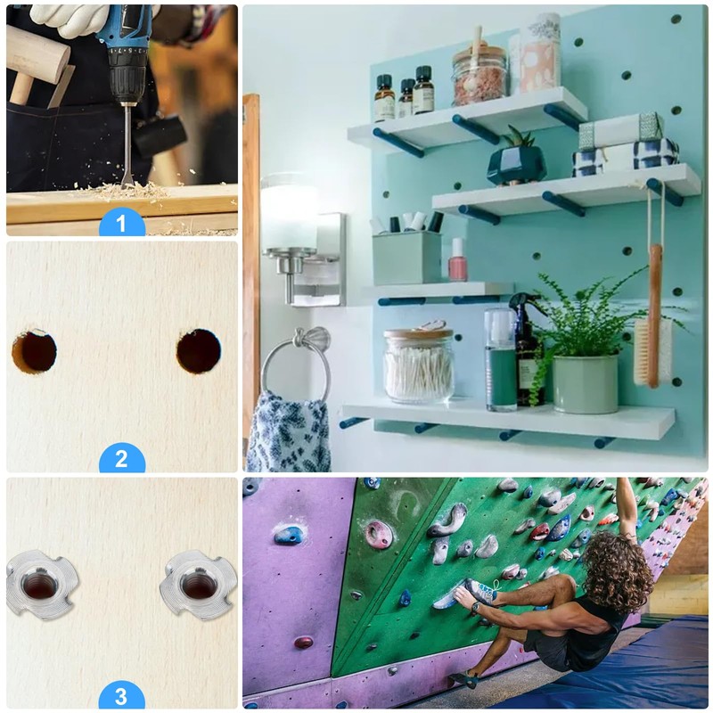 - 【High Quality Steel】 This T Nut is zinc coated steel which is one of the most prevalent types of corrosion-resistant coatings, making it last longer than other nuts on the market today. Our T Nuts are very strong and are great for both indoor and outdoor use.