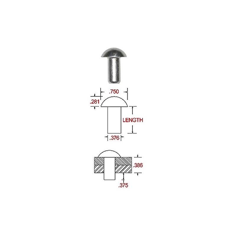 3/8 Dia. X 3/4 Solid 2117-T4 Aluminum Round Head Rivet, Plain Finish (Pack of 1 LB - Approximately 64 Pieces)
