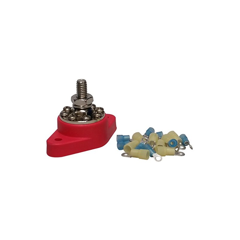 - 3/8" Stud - 8 Terminal Red Power Distribution Block For a Variety Of wiring Scenarios