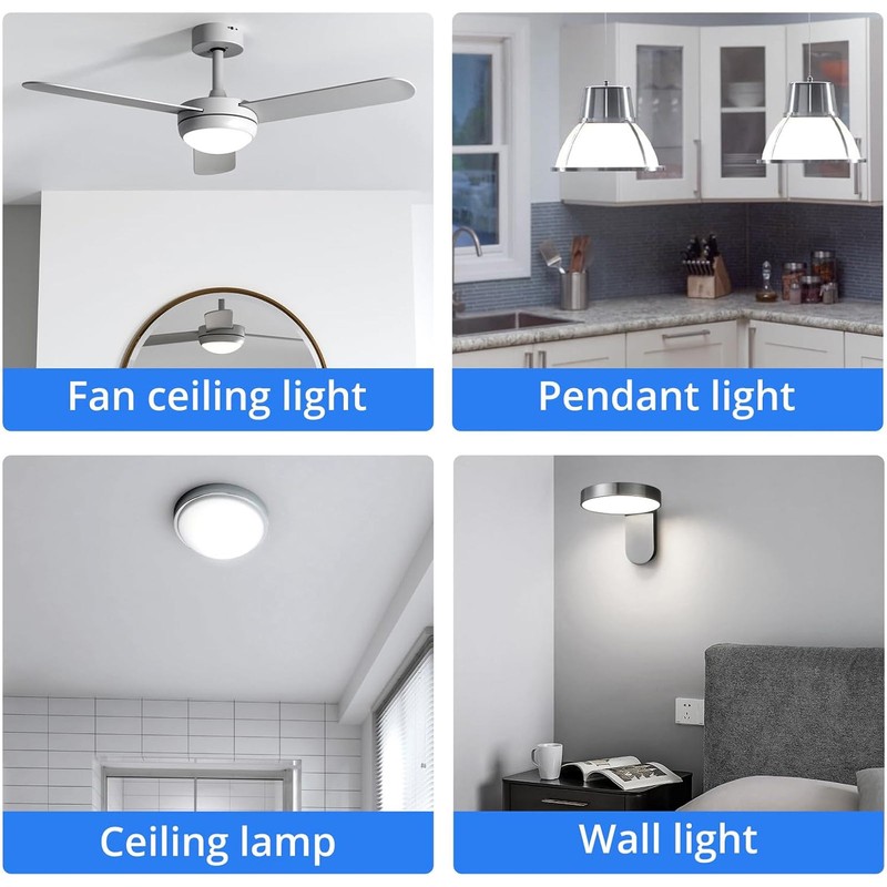 1、ENERGY SAVING DIMMABLE: Fan LED lights are more energy efficient than traditional bulbs, 2000LM brightness, saves up to 90 percent of energy consumption, fan light kits are dimmable and compatible with most Led dimmers, which greatly reduces the cost of use. (Dimmer not included) 2、EASY TO INSTALL: The LED ceiling fan light is designed with magnet adsorption, it can be easily adsorbed on metal fixtures, connect the reserved cable wires to the circuit hardwired and ready to use, no need for professional skills to install. 3、SOFT AND COMFORTABLE: Ceiling fan light kit, soft and comfortable light, no flickering, guard your eyes, no light pollution, suitable for any environment. 4、WIDELY USED: 3.93inch ceiling fan LED light replacement can be replaced with many types of ceiling fan light, suitable for bedroom, kitchen, living room, corridor and so on. 5、HIGH BRIGHTNESS LONG LIFE: 3.93inch ceiling fan LED light replacement is designed with PCB panel, high heat dissipation efficiency, life span up to 50,000 hours.