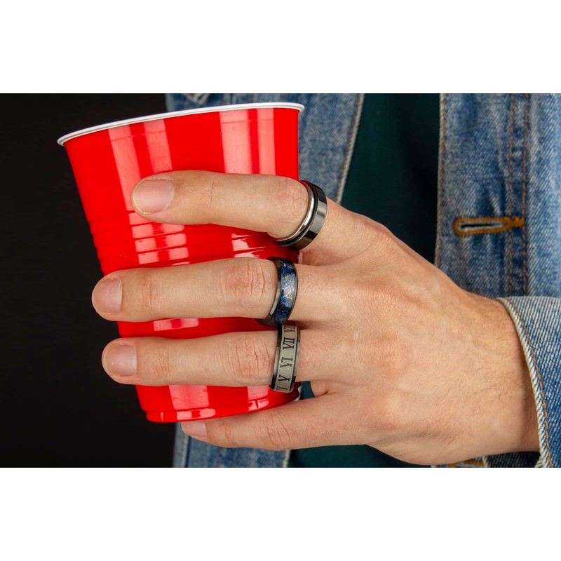 - DURADERO: El acero inoxidable es uno de los metales más duraderos. El acero es una mezcla de aleación de titanio, cromo y, a veces, níquel. Gracias a esta combinación metálica, el acero tiene una resistencia a la tracción muy alta, y es muy duradero. Gracias a la construcción de acero inoxidable, puede confiar en que su anillo de acero resistirá los entornos y las tareas normales y más difíciles a las que expone el metal. Los anillos de acero no se deformarán como lo harían la plata o el oro.