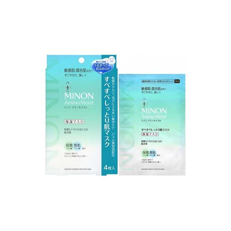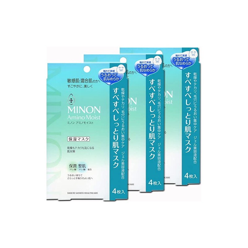 [3 Boxes] Minon 4987107629906-3 Amino Moist Smooth Skin Mask, Face Mask, 8.7 fl oz (22 ml) x 4 Sheets x 3 Boxes