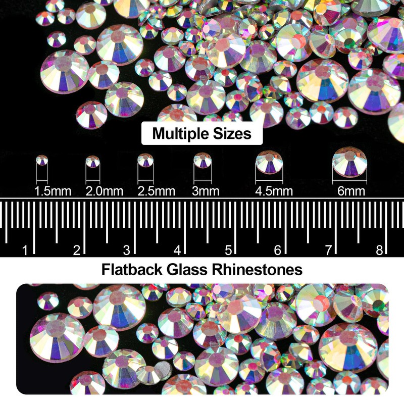 - 💎COLORFUL, MULTI-SIZE AND GREAT AMOUNT -- This Set Provides 12 Colors of Nail Rhinestones With 4 Sizes(2mm, 3mm, 4mm,5mm); Flatback Round AB Crystal Rhinestones With 6 Sizes(1.5mm, 2mm, 2.5mm, 3mm, 4.5mm, 6mm); And Half Round White Pearls With 6 Sizes(2mm, 3mm, 4mm, 5mm, 6mm, 8mm); Approximately 5790 Pcs of Gems Beads in Total.