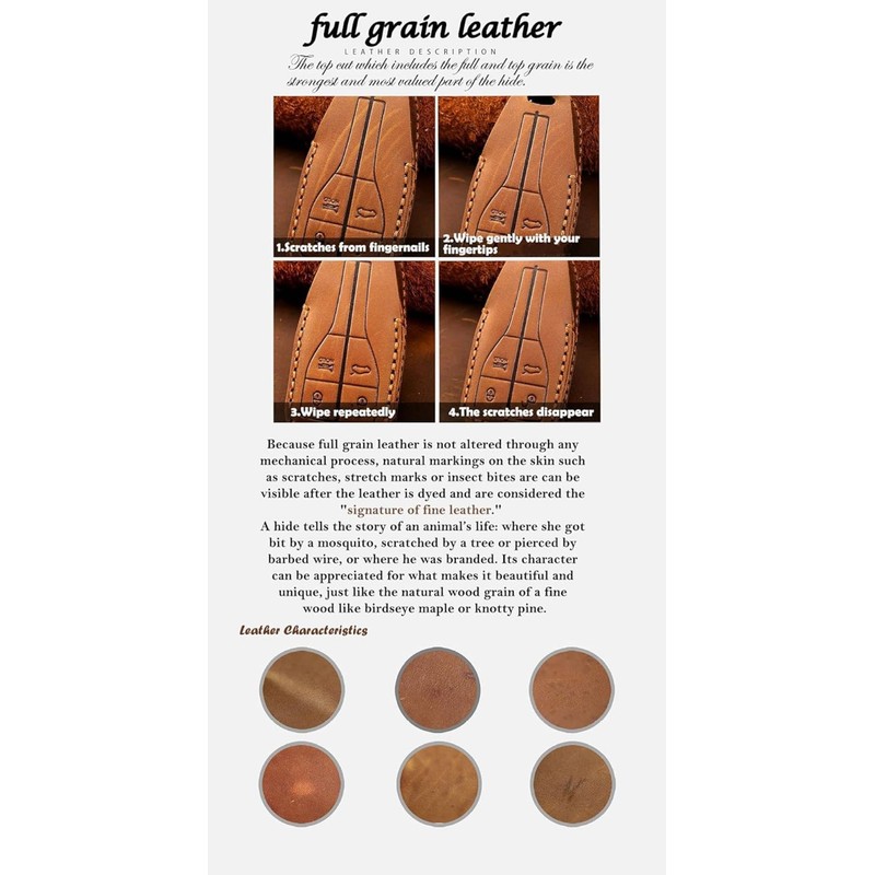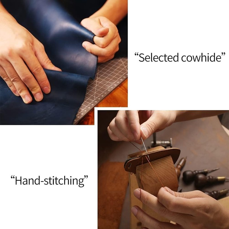 • 【PREMIUM LIGHT LEATHER】 - Selected premium leather for long durability, which is smooth, light and soft, with good abrasion resistance and elasticity. No deformation and do not fade. Hand-stitched by experienced craftsman one by one with delicate stitching. When you gently press the epidermis, it will produce a discoloration effect. Scratching the leather surface with nails will leave obvious scratches, but after repeated wiping, the scratches disappeared.