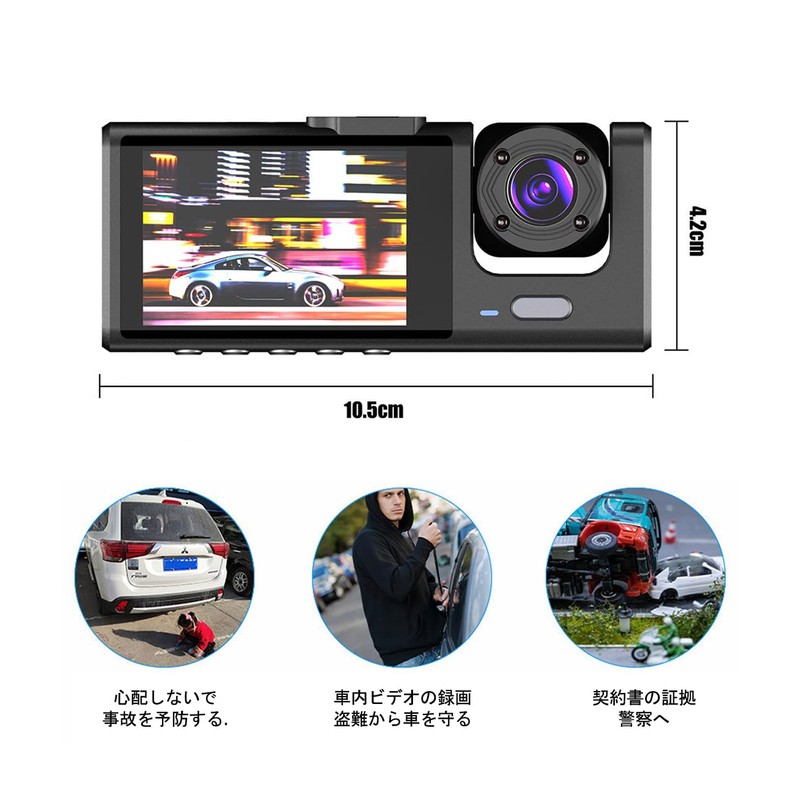 - 3 Camera Dash Camera: Introducing a 3 camera dash camera that can record 3 cameras at the same time. Perfect for taxi and Uber drivers. 170° front camera, 100° interior camera, 120° rear camera provides super wide angle close to 360°, simultaneous recording at FHD 1080P and high definition to protect you and your car from all sides. This product supports switching to Japanese language