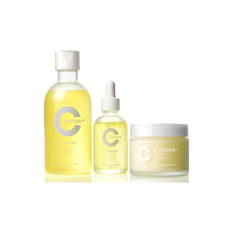 【高保湿 スキンケア 3点セット】CVITASプラス 化粧水・美容液・クリーム ビタミンC アゼライン酸 レチノール 配合 C LOTION + 300ml C SERUM + 50ml C CREAM + 80g 約2ヶ月分 毛穴ケア うるおい 美肌 柑橘 香り シービタス CVITAS +