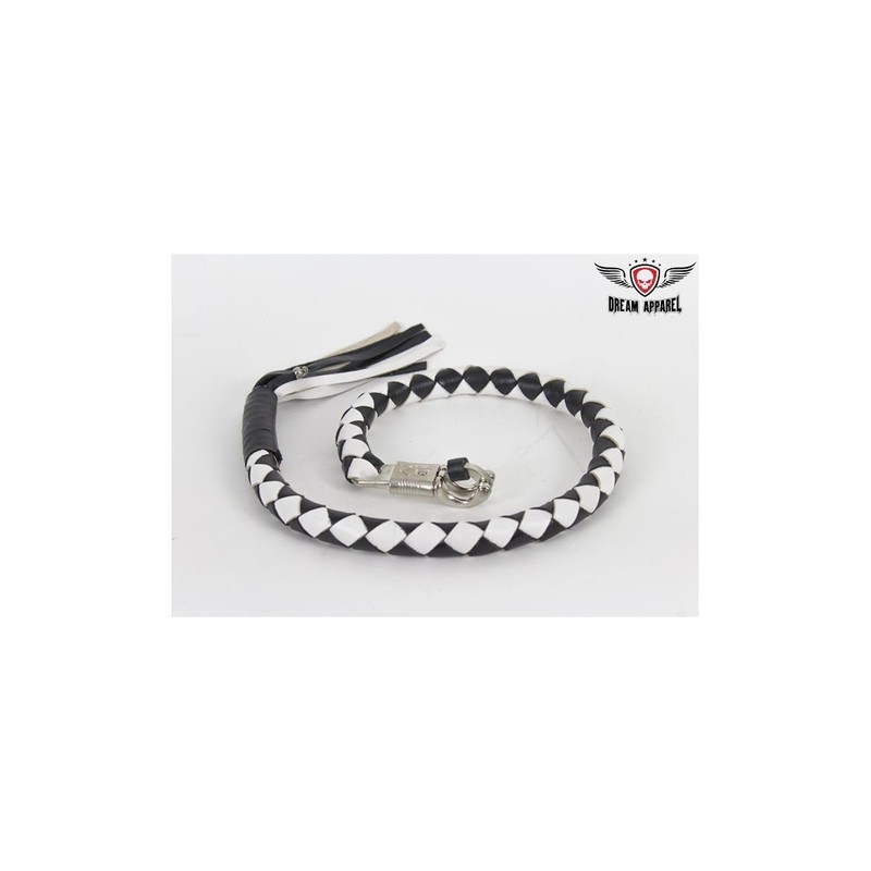 • Genuine black and white hand-braided leather around a nylon core