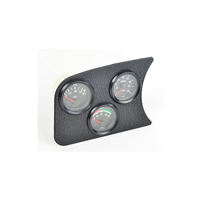 Empi 14-1001 Black Dash Gauge Panel For Volkswagen Beetle. Fits Three 2-1/16" Size Gauges, Vdo Or Autometer. Specs: Gauge Type: All 2-1/16" Dash Mount Material: Steel / Black Finish Application: Vw Bug Left Side Of Speedometer Gauge Count: 3