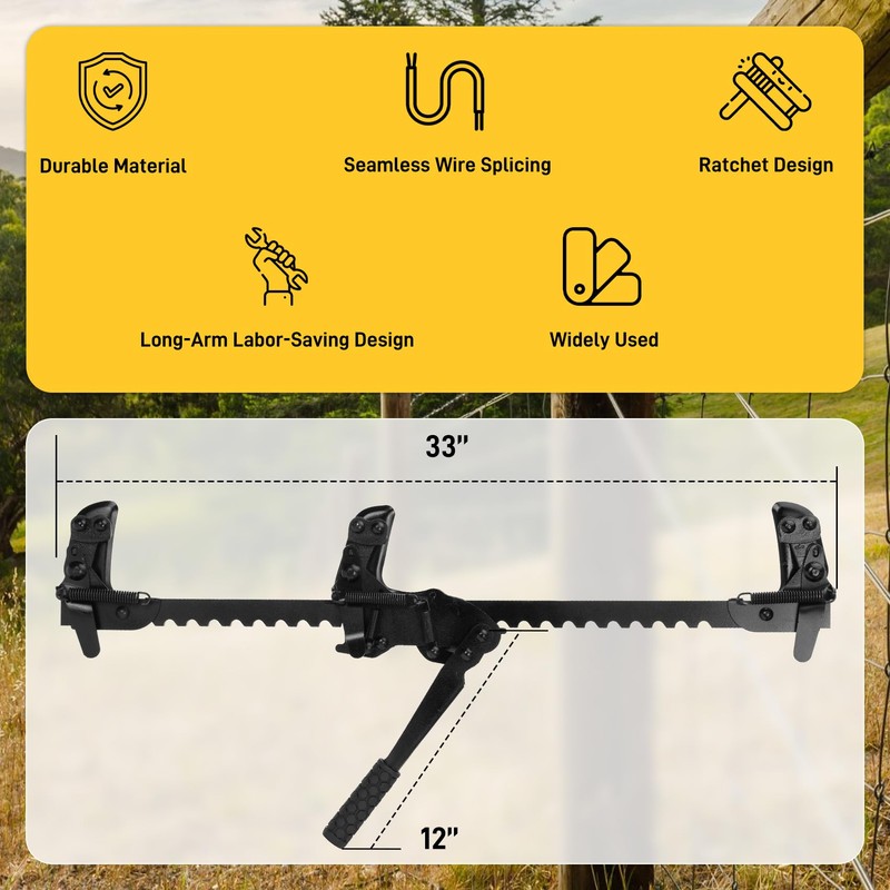 - 【Long Arm Labor Saving Design】Featuring a wire tensioner with a long arm design that repairs and tightens wire fences with less effort. Quickly tightens any fence, such as high strength, barbed wire or smooth barbed wire.