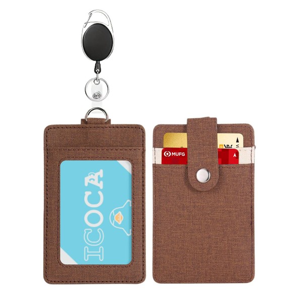 定期入れ リール付き パスケース メンズ レディース 脱落防止バンド付き 両面3枚 ic カードケース 社員証 PUレザー子供 男女兼用 縦 定期入れ リール 伸縮 (ブラウン)