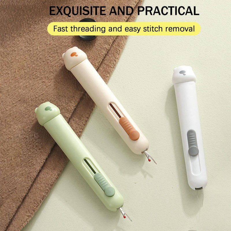 - 3-in-1 Dual-Head Design: Our sewing seam ripper design makes it easy to remove stitches without straining your eyes. The 3-in-1 dual-head function allows for seamless thread removal and threading. It also features a needle storage design