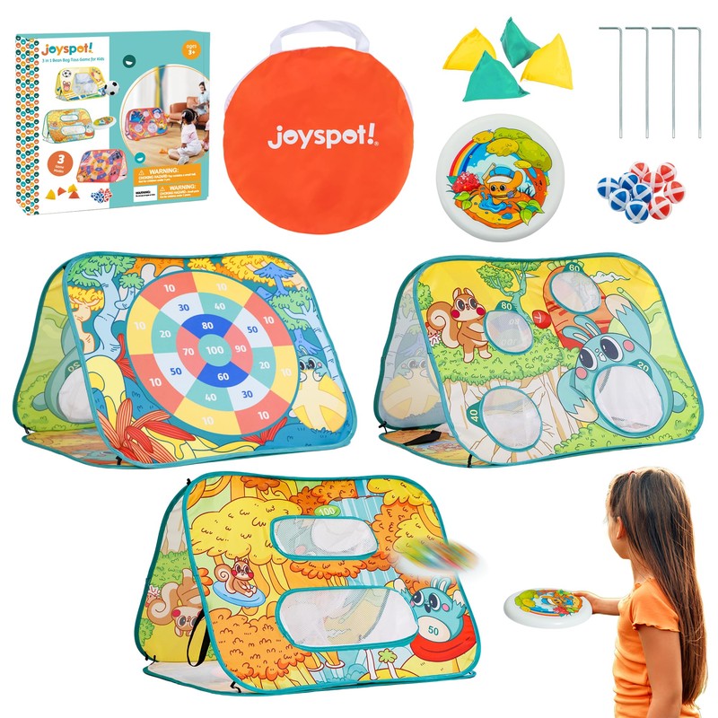 3-in-1 Kids Outdoor Toy Set - Bean Bag Toss, Disc Toss, and Dartboard Game