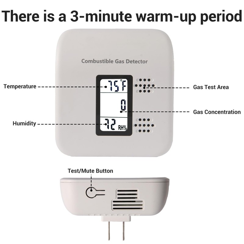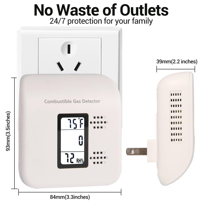 3-in-1 Gas Leak Detector, Plug-in Natural Gas Detector for Home. Propane Monitor with Audible and Visual Alarm