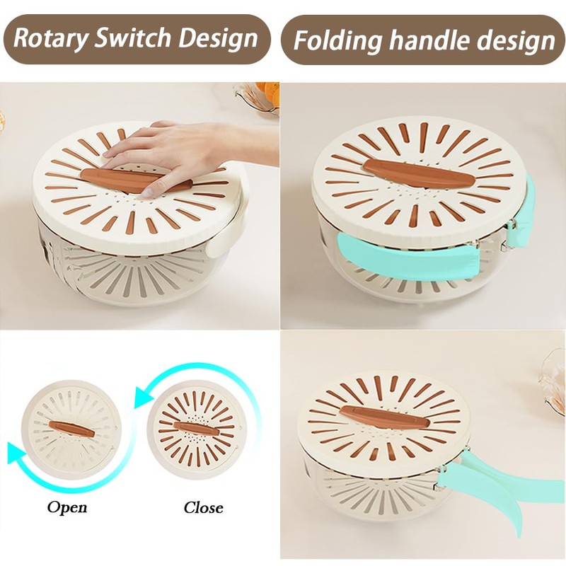 - 【Draining Quick】The lid of the vegetable washing basket is ingeniously designed with a hollow net, featuring a knob for opening and closing, thereby facilitating the washing and draining of fruits and vegetables.