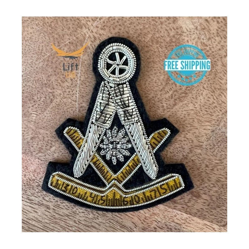 3" Masonic Past Master Emblem Silver Bullion Patch Hand Embroidered