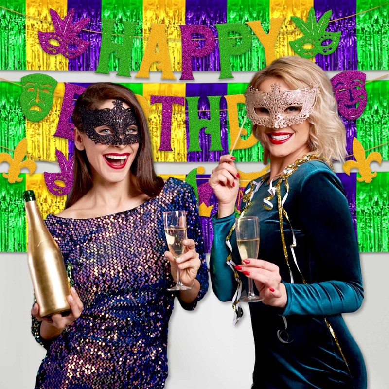 3 Pack 10 Feet Gold Green Purple Tinsel Foil Fringe Garland, Metallic Streamers Banner Wall Hanging Garland for Parade Floats, Graduation, Birthday, Baby Shower, Disco, Celebration Party Decoration