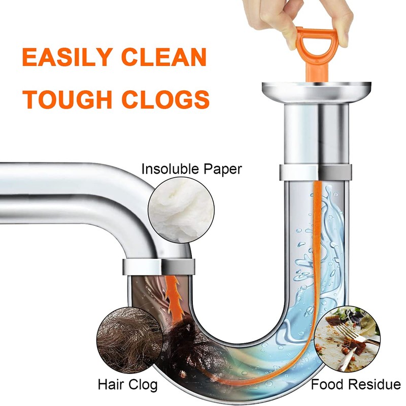 - Product packaging and size—3Pcs * 25 inch orange drain snake unblocker can catch hair and clogs in a variety of drains.
