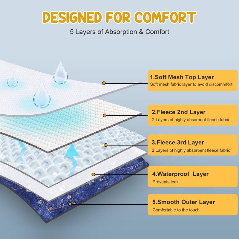 - 🐩 Highly absorbent padding with mesh inner layers & waterproof outer layer prevent leaks and damage to floor or furniture