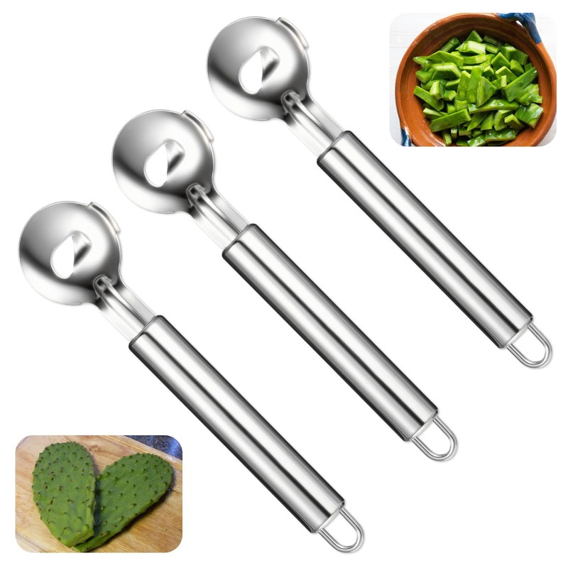 3 Pack Cactus Peeler Spoon Cactus Peeling Knife Stainless Steel Noodle Cutter Tool Multi-Function Sliced Peelers Set Long Handle with Hole for Kitchen Gadgets Cooking Accessory