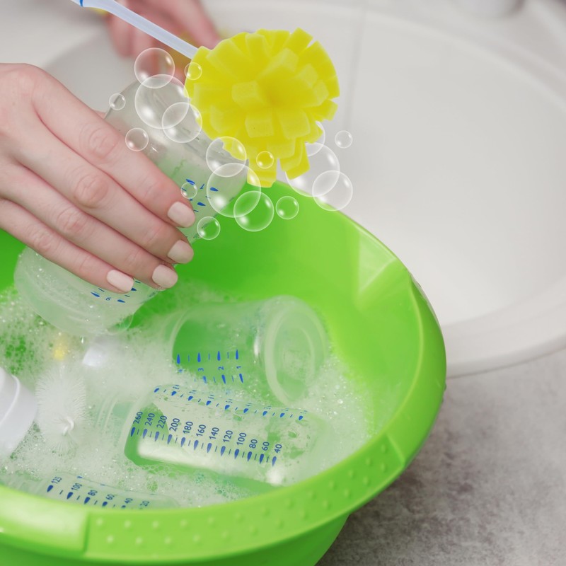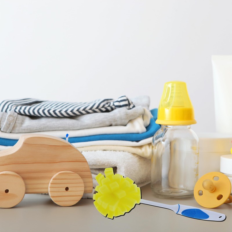 - 🍶 GENTLE FOAM HEAD FOR STREAK-FREE RESULTS: The rounded foam head glides smoothly across surfaces, making it perfect for cleaning delicate items like wine glasses, coffee tumblers, baby bottles, and jars. Safe for use on non-stick cookware and glass.