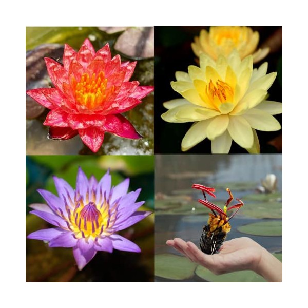 - 3 Pack water lilly tuber. Nymphaea Mangkala Ubol (Yellow) Hardy | Nymphaea Wanvisa (Red) Hardy | Nymphaea Lindsey Woods (Purple) Tropical.