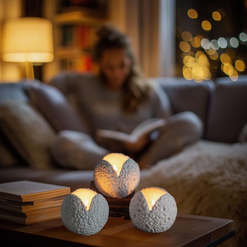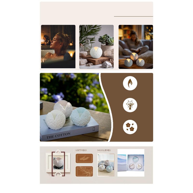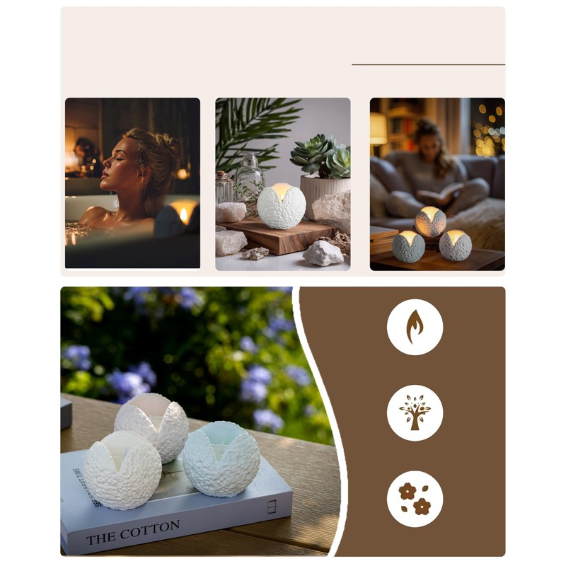3 Pack Meteorite Gypsum Jar Candle Set Unique Lotus Shaped Spherical Scented Aromatherapy Candles Natural Soy Wax for Home Fragrance & Decor (Lotus Flower)