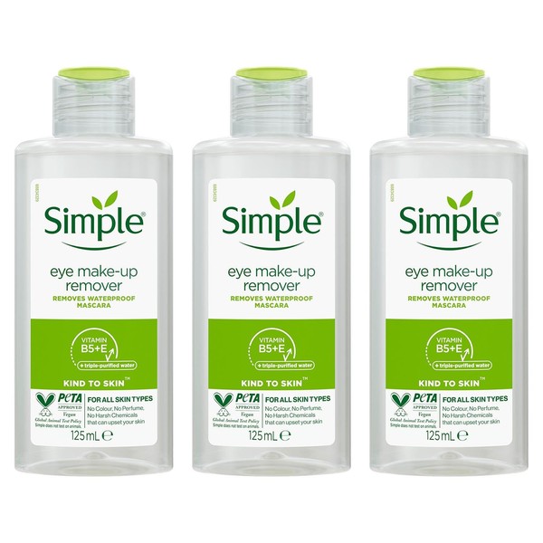 3 Pack of 125ml Simple Kind to Skin Eye Make-Up Remover For Sensitive Skin