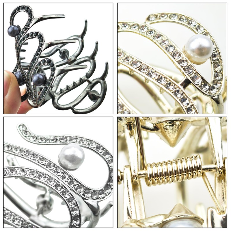 - 【PACKAGE INCLUDES】- You will receive 3 irregular snake shaped grab clips with pearl rhinestone wave grab clips in gold, silver, and gunmetal black 3 colors.