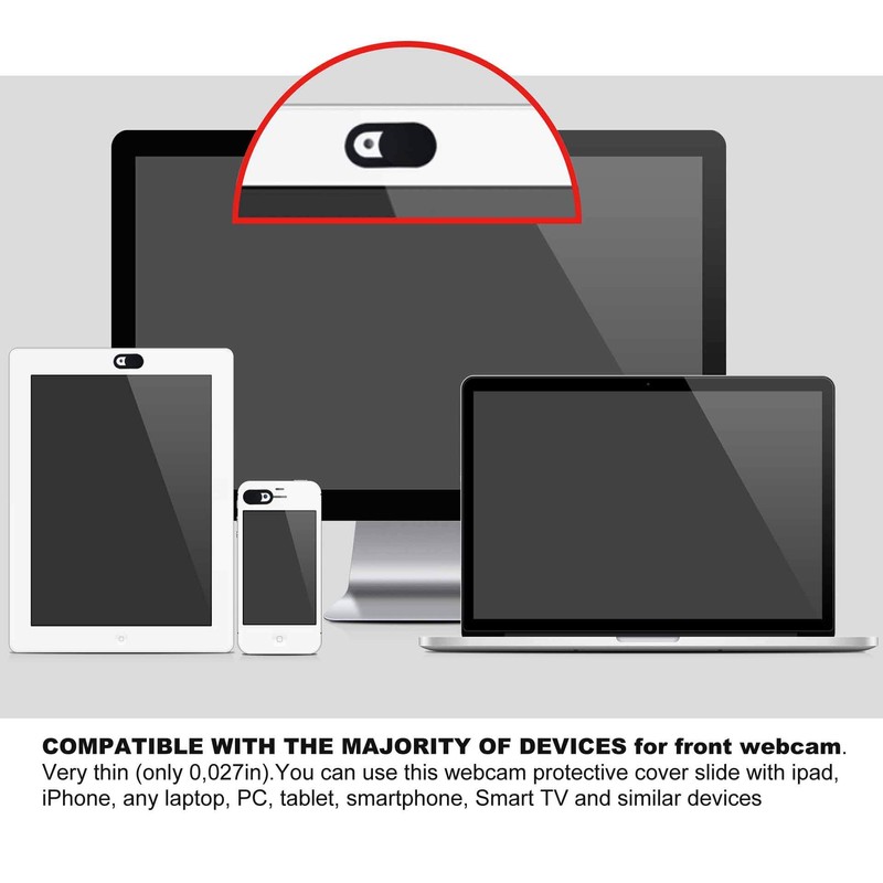 - Compatible with most of front Facing camera: smartphone, tablets, all-in-one desktops, laptops. Fits on most devices: Our webcam cover slider is compatible with most models of laptop,computers, tablets, cell phones and other digital Devices.Warm tips: Due to its size, this webcam cover is used for in-built webcam(front camera) on most laptops,phones and tablets, BUT NOT for external webcam
