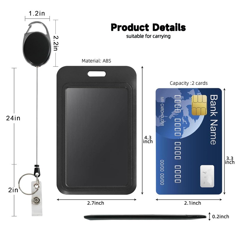 - Package quantity: 3 pack. Each set includes a sturdy badge holder (fits 2-3 cards) and a retractable keychain.Insert size: 3.4" x 2.2", each can hold 2 pcs of credit card similar sized id badges