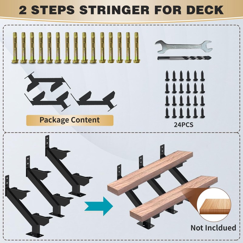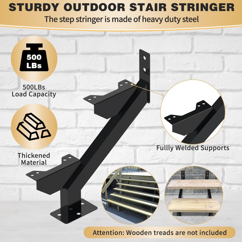 • [Stable & Reliable Step Stringer] The 2 steps stringer is made of heavy-duty and thickened steel, with black powder coating surface. It is strong enough to hold up to 500 pounds loading and resistant enough to avoid rusting for long term outdoor use purpose.