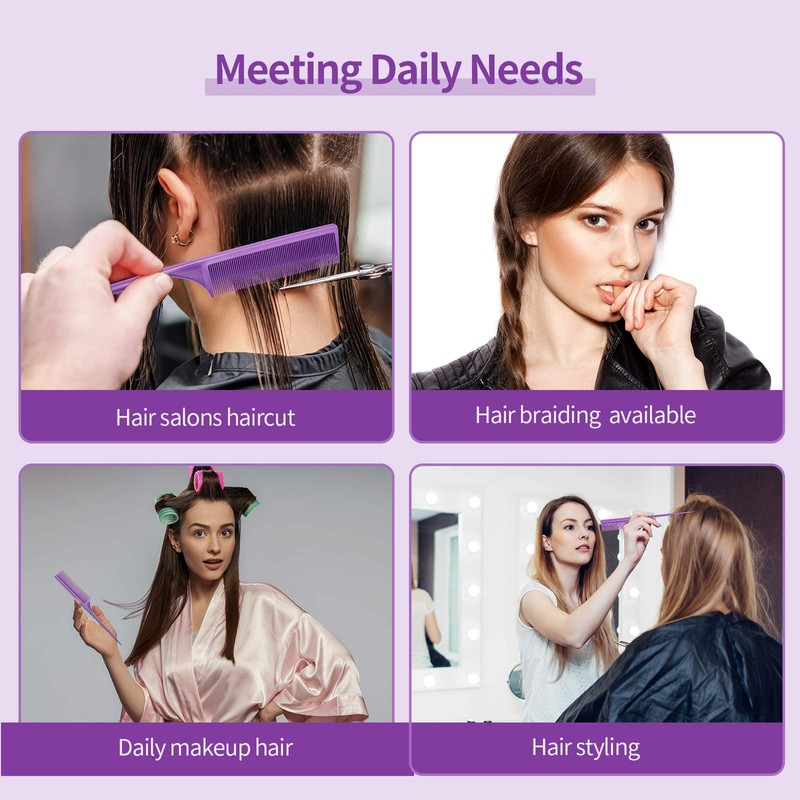 Leinuosen 3 Pack Carbon Fiber Rat Tail Styling Comb, Heat Resistant Anti Static Teasing for Back Combing Root Teasing Adding Volume Evening Styling(Purple)