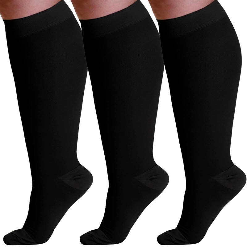 ABSOLUTE SUPPORT (3 Pairs) Wide Calves Compression Socks for Women & Men Circ...