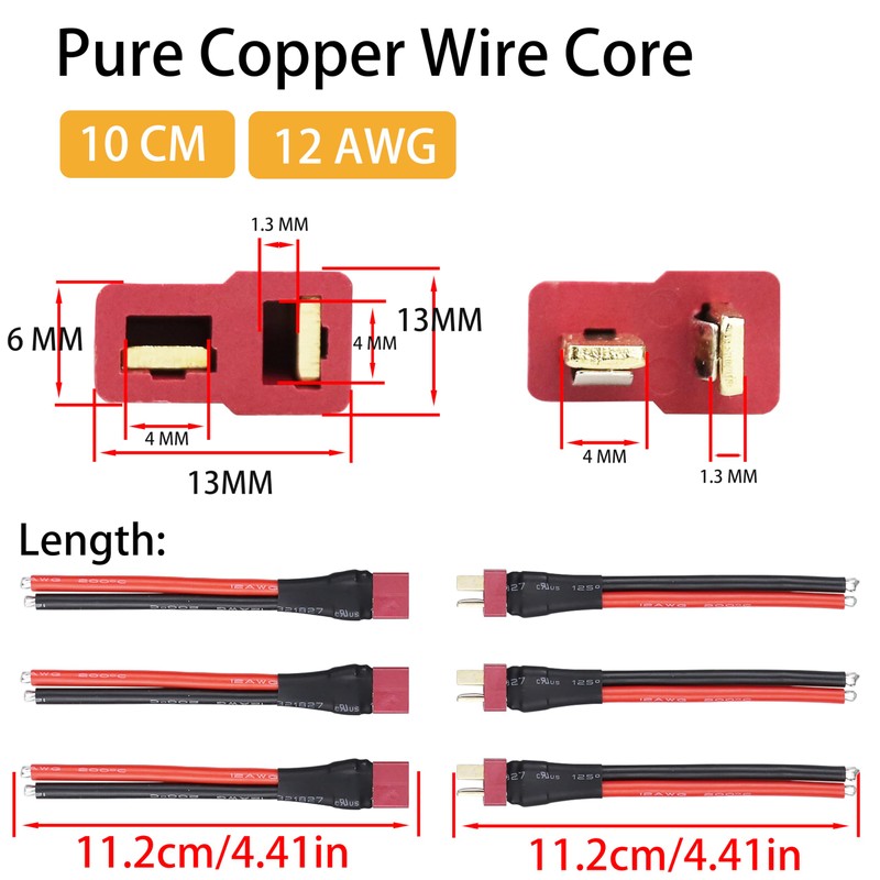- DIMENSIONS: Each connector features 10cm (3.94 inches) wire length with standard T-plug dimensions for seamless integration