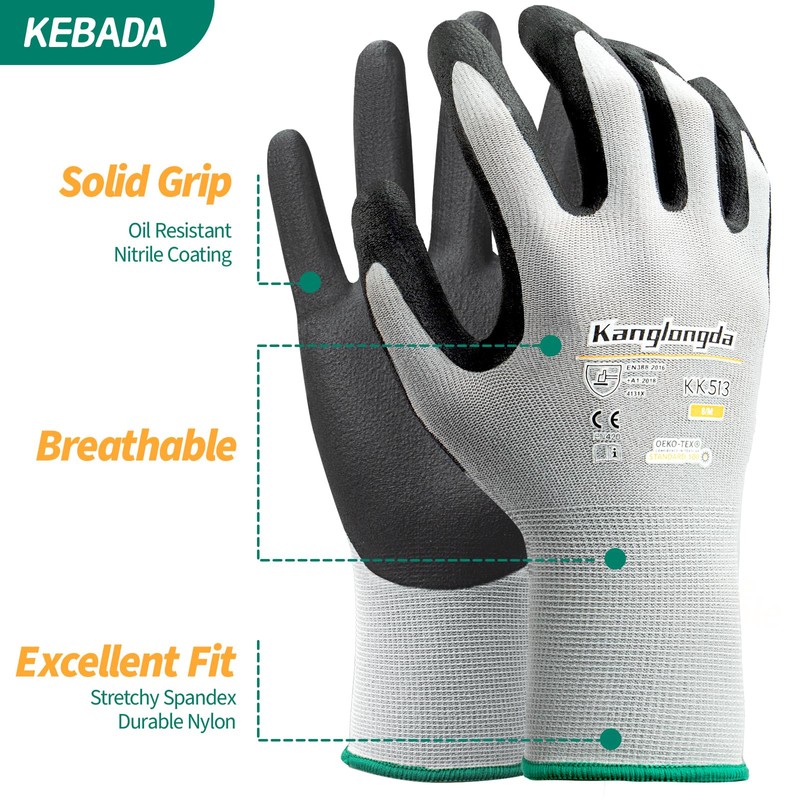 - 【Breathable Working Glove】: Open-back design for ventilation, Dipped nitrile coating on palm and fingers of these nitrile work gloves. Oil-resistant, perfect for greasy mechanic work.Keep hands cool, dry, clean and productive.