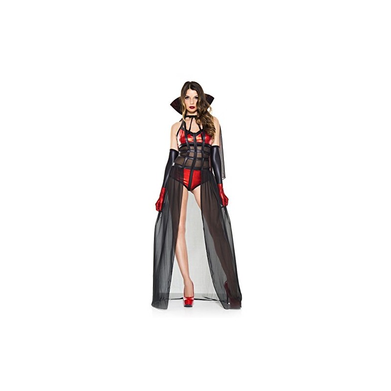 3 PC. Ladies Bloody Vixen Vampire Romper Costume Set - Small/Medium - Black/Red