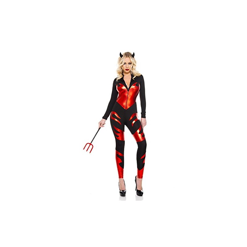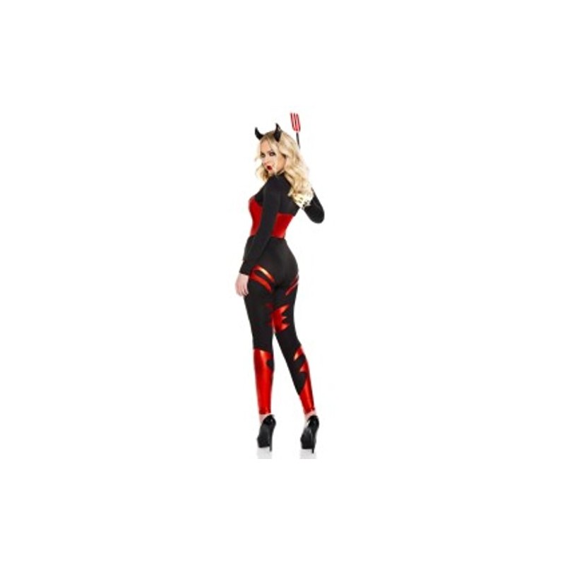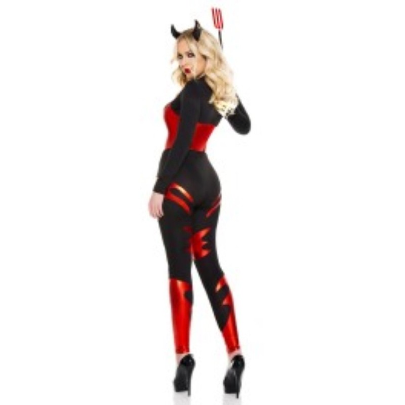 3 PC. Ladies Sizzling Devil Jumsuit Costume Set - Small/Medium - Black/Red
