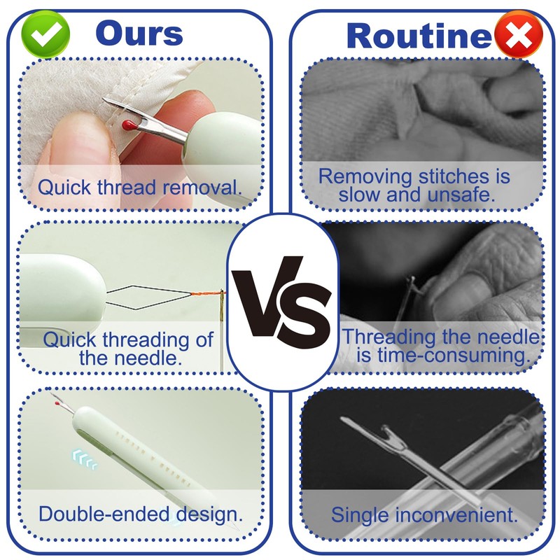 - Ergonomic & User-Friendly: Dual-head design simplifies threading and unpicking, while the smooth edges provide comfort during extended projects
