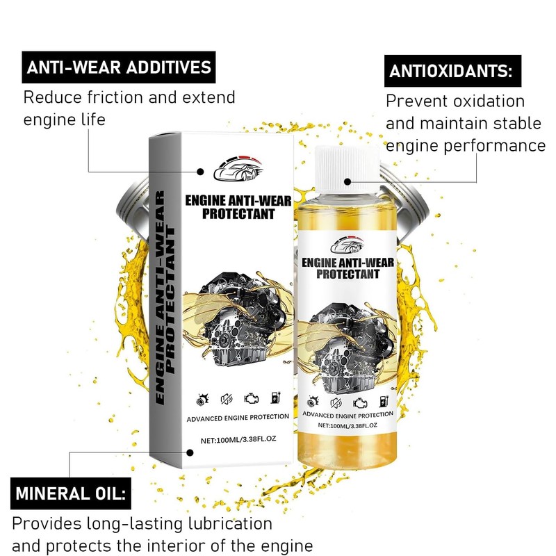 - 【Premium Anti-Wear Engine Oil Additive】Engineered to safeguard your vehicle's heart, this premium Engine Anti-Wear Protectant enhances engine performance, reduces wear and tear, and prolongs your engine's lifespan. Whether you drive a daily commuter or a high-performance vehicle, this protectant is the ultimate solution to ensure your engine runs smoother and longer