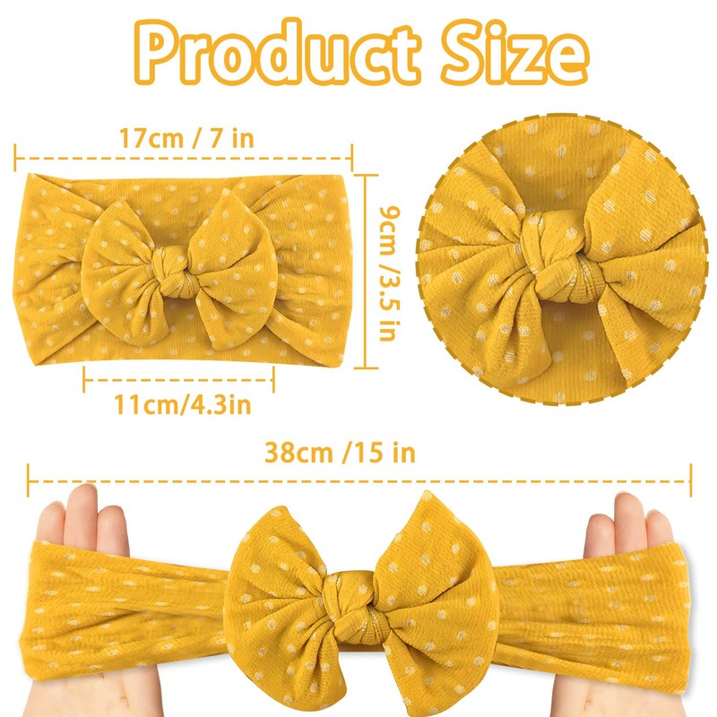 - 🎀[Cute Style]: The cute design of our baby girl bow headband, with a big bow on the front and retro polka dots on the headband, makes your baby look like a little princess. Available in cute colors to match any outfit!