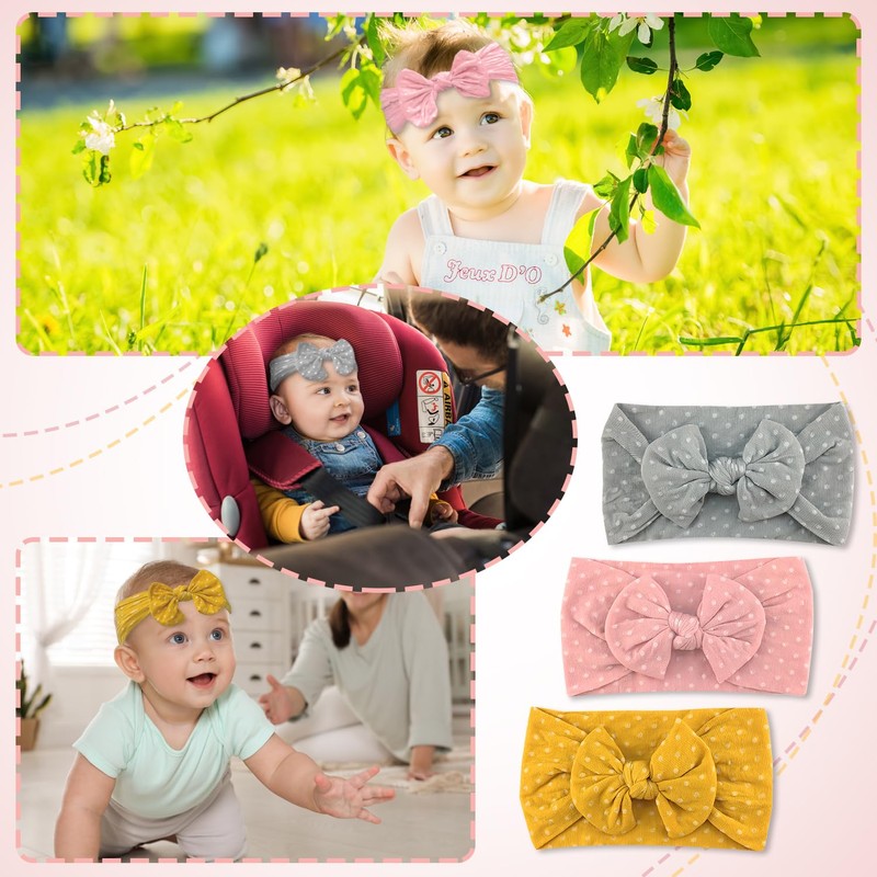 - 🎀[Great Gift]:You will receive 3 different colors of baby girl hair bands in grey/pink/yellow, which are enough for your daily use. This will be your best choice as a gift, you can give it to your newborn baby or your own child in different festivals, and it will be even more surprising to receive a lovely bow headband.