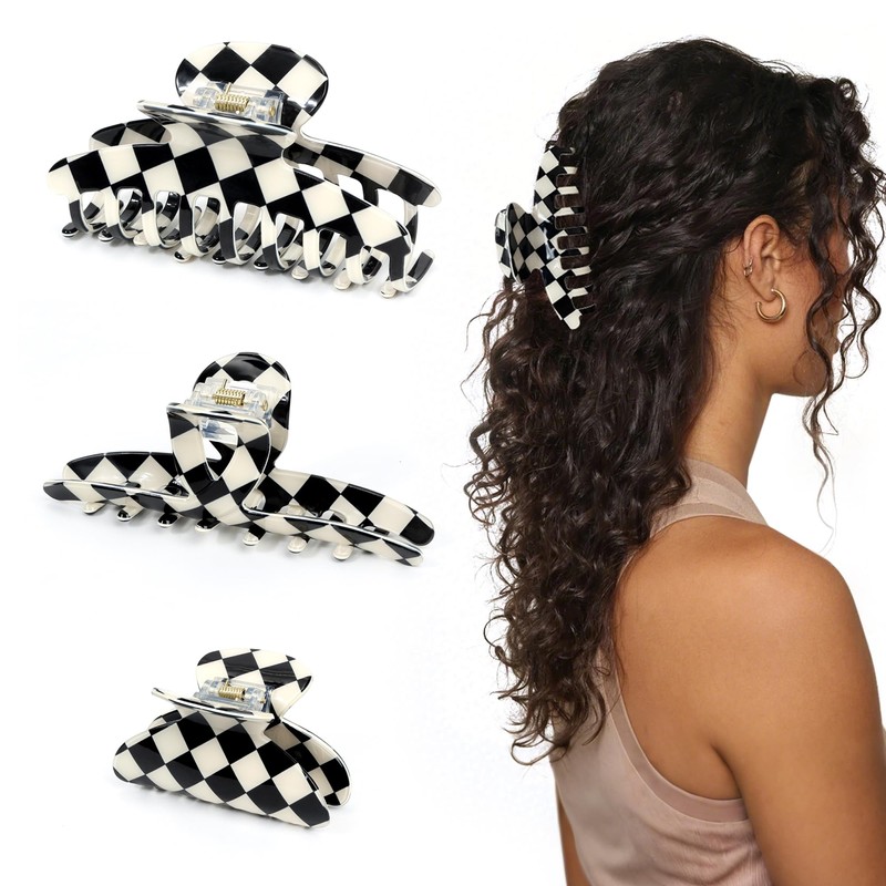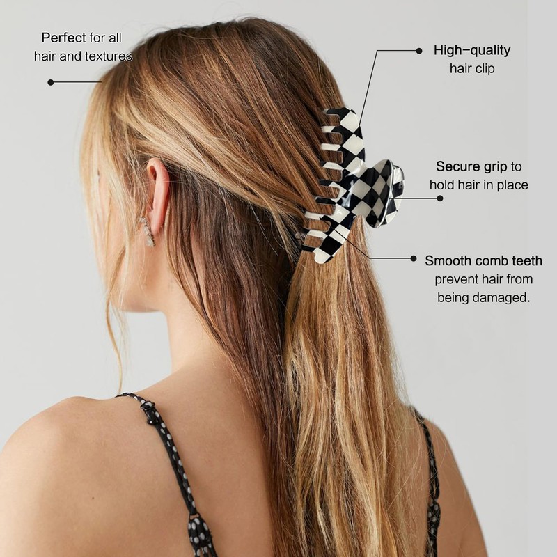 - 【Checked Design】These vintage design checker claw clip are featured with black and white lattice pattern, classic and stylish, and can be nicely matched with your different hairstyles and makeup.These hair claw clips can catch thin, thick, long, or short hair and don't worry to damage your hair.